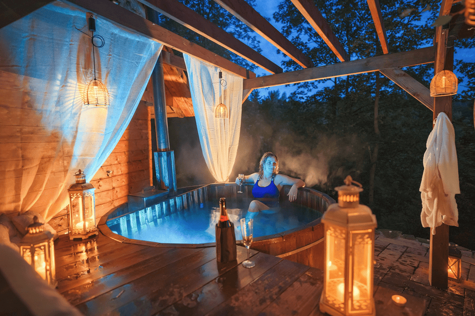 Gorąca balia w lesie z jacuzzi Gorąca balia w lesie z jacuzzi