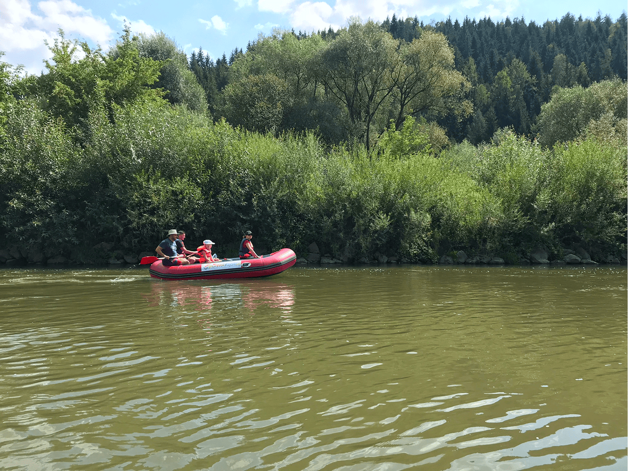 Spływ pontonem na Popradzie – wakacje z dziećmi w Beskidzie Niskim